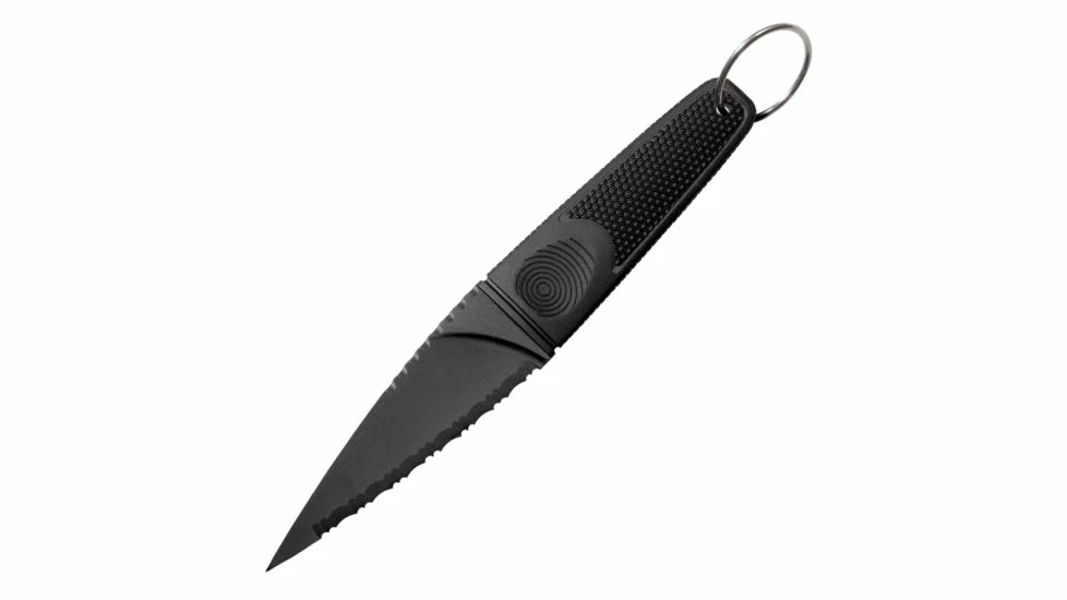 Black as a moonless night and silent as the gravethese are the qualities that make up Cold Steel’s new lightweight Nightshade series. Nightshade knives are light enough to be tied, tucked, or taped just about anywhere on one’s person. And, since they are impervious to heat, cold, moisture and extreme weather they are a natural to hide both inside and outside your house. They can be hidden virtually everywhere from the hedges and flowerpots in your yard, to the refrigerator, bookshelves, and closets in your house. Keep one in every room of the house, from the laundry room to the bathroom shower! With violent home invasions on the rise a strategically placed Nightshade could save the day, and even your life. This is a detailed reproduction of the existing Cold Steel favorite. Made from Grivory the latest in fiberglass reinforced plastic, and stronger than even the super tough Zy-Ex used in earlier models. They are UV and heat stabilized, making them impervious to the elements. One of the most unique features of these knives is their handles. They are made from deeply checkered Kraton that has been molded directly to the blade tangs. Kraton offers a superior, slightly tacky gripping surface that is unaffected by heat, cold, or moisture. It never rusts, warps, cracks or splits even in the most extreme environments.![]()