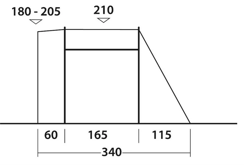 - Fits campervans/vans with an attachment height of 180 to 205 cm