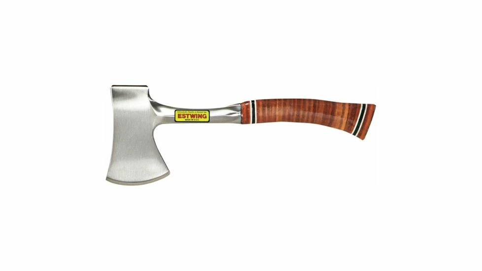 The Estwing 12 inch Sportsman’s Axe features a one-piece forged steel construction with a leather sheath.![]()
