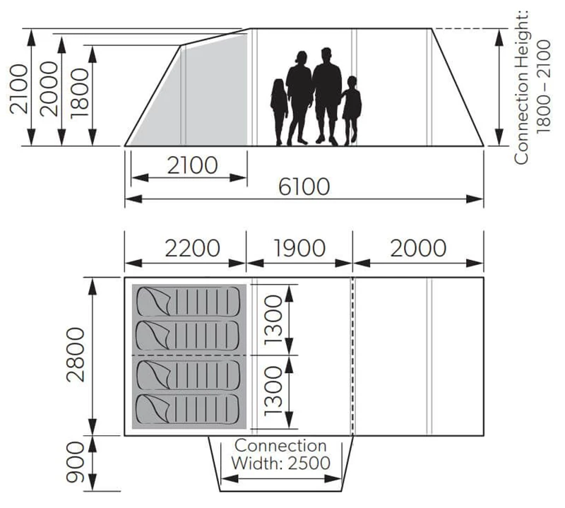 Designed to sit alongside your camper van, the Kampa Touring AIR provides the maximum amount of space without extending beyond your pitch. Inside you’ll find a spacious living area, full-height windows, plenty of mesh ventilation and a large four berth inner tent, all supplied as standard