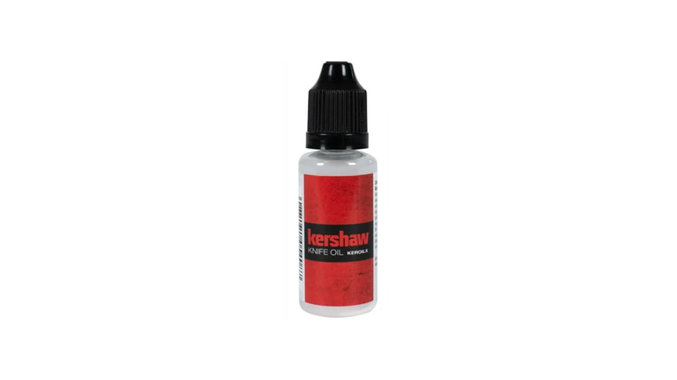 Kershaw Knife Oil is engineered to protect and enhance your knife’s folding mechanism. Your Kershaw is a well-oiled machine. Make sure it stays that way. CLEANING: Wipe away debris and, if needed, wash with a mild detergent. Dry thoroughly. You may wish to use compressed air and/or a cotton swab to dry hard-to-reach parts. OILING: Shake oil well before using. Put a drop of oil on all moving parts. You should be able to access the pivot, detent ball, and detent hole without taking the knife apart. Work the oil in by opening and closing the blade. Wipe away any excess oil. Apply a light coating of oil to the blade before storing. Kershaw Knife Oil is non-toxic, but consuming oil is not recommended. Kershaw’s Limited Lifetime Warranty does not apply to Kershaw Knife Oil.![]()