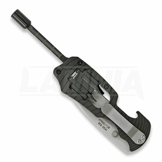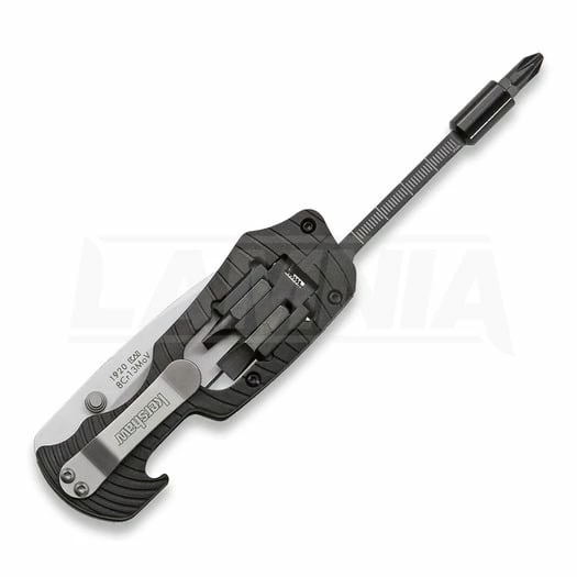 Type: Linerlock; Closed: 4.25″; Blade: 3.25″ l 8Cr13MoV Stainless l Standard Edge l Bead Blast Finish; Handle: Black l GRN; Other Info: Thumb Stud(s) l Pocket Clip. Fold out bit driver. Four bits are stored inside handle – two standard and two Phillips.