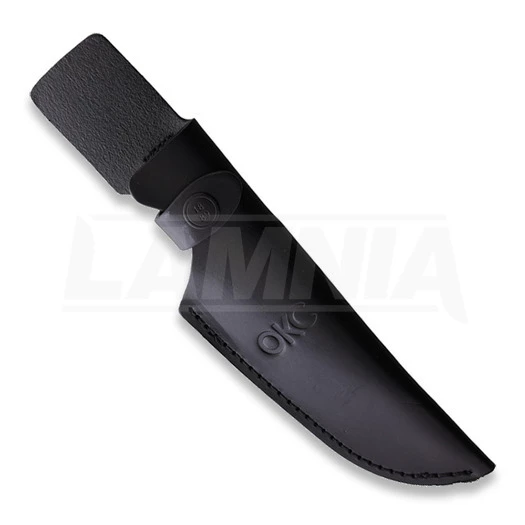 10″ (25.4cm) overall. 5″ (12.7cm) mirror finish 420HC stainless blade. Multi-color micarta handle. Full tang. Lanyard hole. Black leather belt sheath.