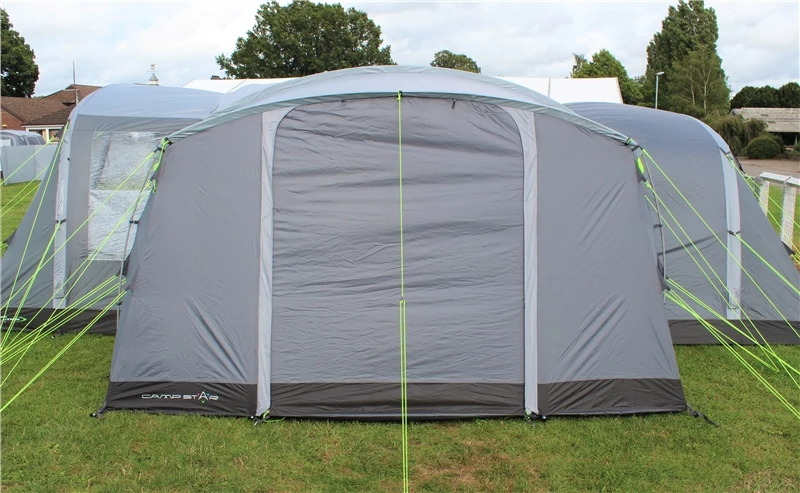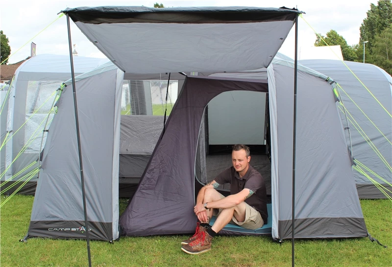 The lightweight pole and sleeve Camp Star Side Porch is the ultimate sheltered utility space to fix alongside your tent. Featuring 2 side windows, toggle in curtains and a removable PE groundsheet, this side porch fits snugly around the contours of your tent using a combination of carefully positioned pegging points and guy ropes. It is made specifically for cooking, storage, dining, relaxing, and sleeping, with the added benefit of being able to use the front door as a sun canopy in conjunction with optional Extension Canopy Poles. A unique feature of this side porch is the ability to clip in our 2 Berth Inner Tent (sold separately) meaning it can effectively be used as a private side bedroom annexe should you wish. Whilst it is designed to fit the Camp Star 500XL, 600, and 700 tents perfectly, the universal nature of the fitting of this side porch means that it is not restricted to just these models, and can be manipulated to fit most tunnel tents of a certain size.