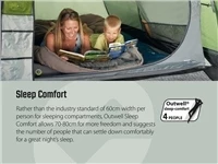 The Outwell Ashwood 5 is perfect for smaller families seeking a comfortable base to make the most of cosy holiday times together away from the everyday life. Easy to pitch and to pack away, it sleeps up to five with plenty of space for hassle-free camping experiences. With its fibreglass poles, full standing height, good ventilation plus versatile Quick & Quiet access features, you’ll find it’s a great tent for comfortable campsite living. The neat front canopy design offers flexible use whilst the large front door and tinted windows deliver a light-filled living space for dining and relaxing each evening.