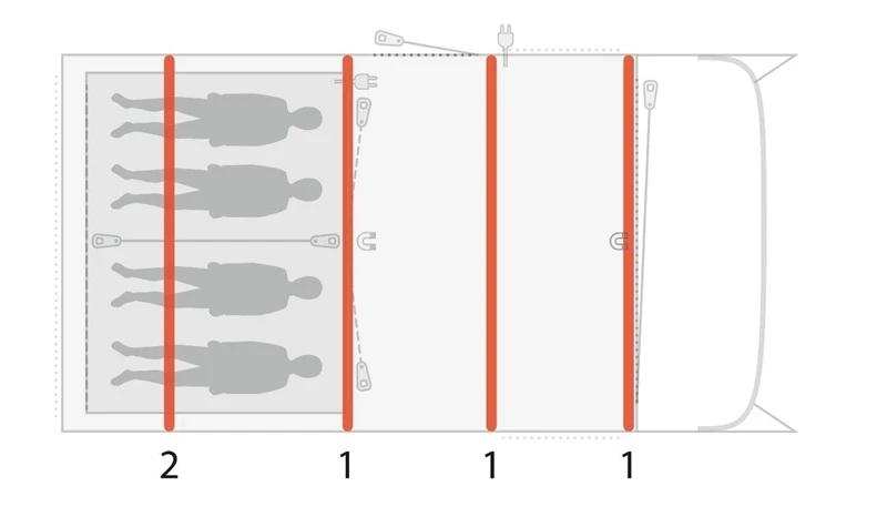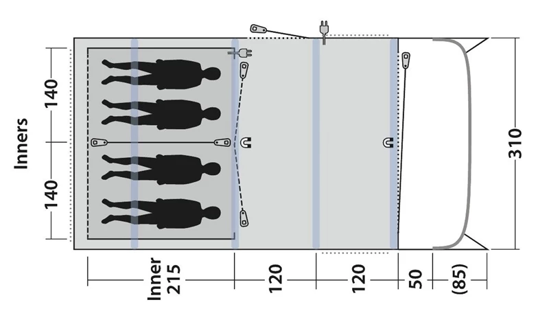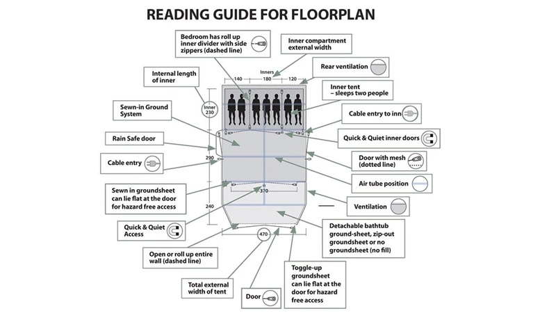 - Reliable, easy-to-operate inflate/deflate valves conveniently placed outside the flysheet