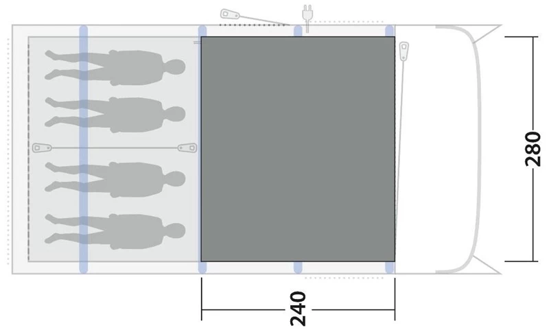 Outwell tent carpets in a soft yet durable lylex fabric are custom-made to fit each tent’s living area and are available as an optional extra ensuring the home-from-home feeling under foot.