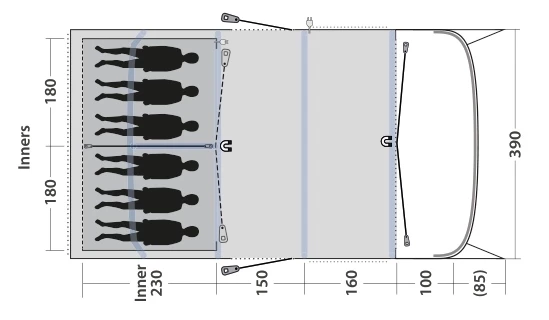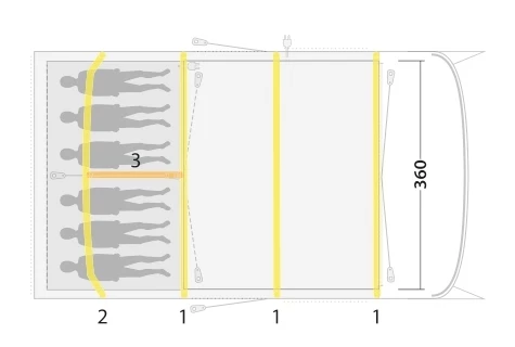 - Reliable, easy-to-operate inflate/deflate valves conveniently placed outside the flysheet