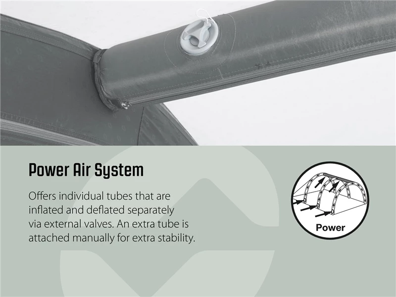 - Power Air System offers durable individual air tube technology, with pre-shaped, Gothic-style tubes pumped up or deflated easily via easy access external valves