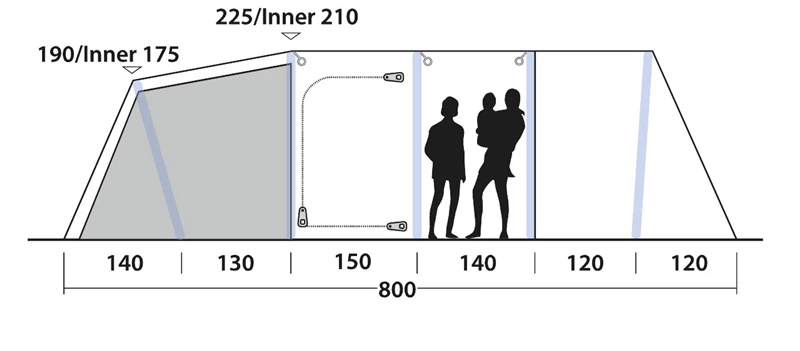 - Type of tent: Four room tunnel tent