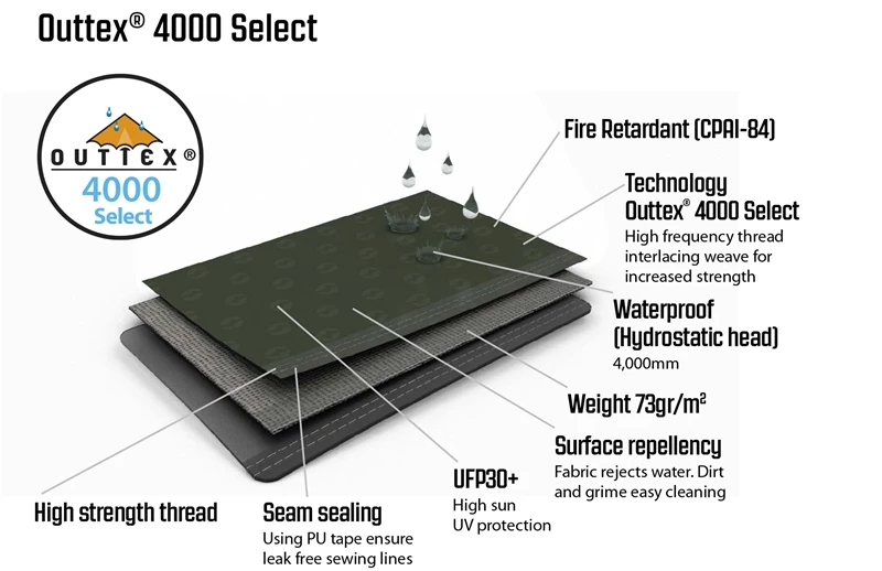 - Flysheet: Outtex® 4000 Select, 100% polyester
