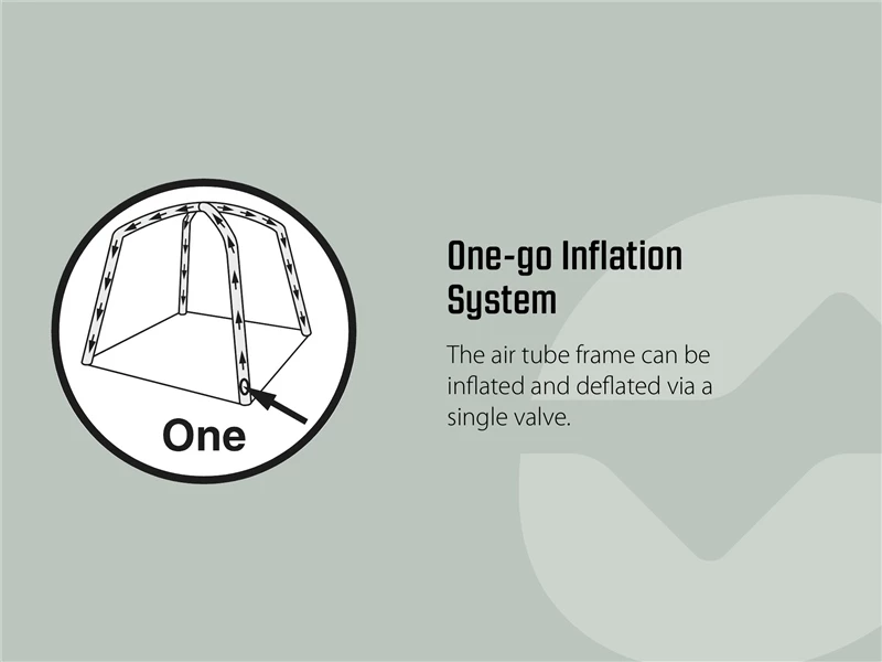 You’ll love the flexible protection from the elements offered by the Outwell Touring Shelter Air. Lightweight, with a compact packed size, the inflatable air tube frame maximises headroom adding convenient living space on tour or as a base for outdoor adventures. You’re not closed in when the sun shines as the side walls have windows and you can roll away the walls to use it as a sun canopy. You’ll also appreciate the convenience of the Outwell Hook Track System to hang lighting and clothing.
