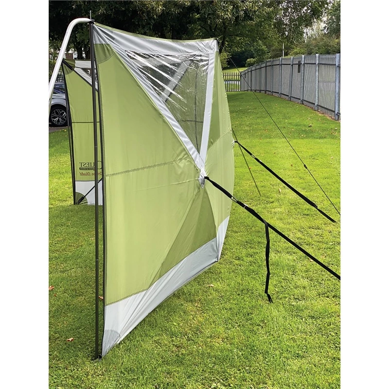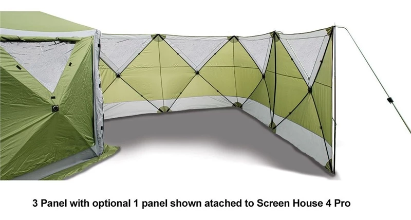 The Screen Shield can be zipped onto any Screen House Pro via the accessory zip on your Screen House Pro. This allows you to create a windbreak directly off your Screen House Pro. You can also connect as many Screen Shields together, or extend them by using the additional panel.