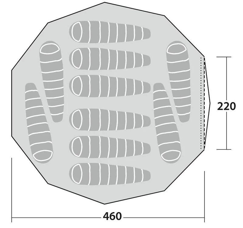 - Groundsheet – 210T Oxford polyester, 10.000 mm, 100% polyester