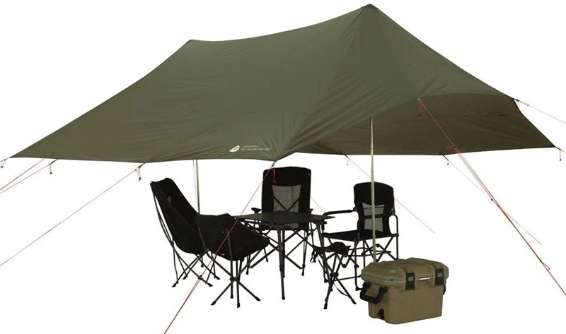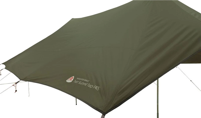 The Twin Summit Shelter PRS is designed so its two adjustable steel poles sit away from the edge, allowing the special cut of the fabric front and back to provide a level of protection from wind and rain not normally achieved with a standard tarp. The provision of an adjustable drying line adds to the shelter’s versatility and its lantern hanging points ensure it can be used for work or relaxation at any time of the day.