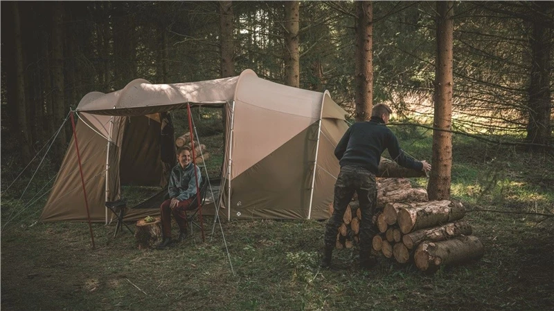 Sleeping five, the Wolf Moon TC 5XP uses HydroTex polycotton RS fabric to maintain a comfortable tent microclimate that’s perfect for warm climates. Rear and low vents control air flow enhanced by mesh panels behind the external doors, which open the tent for bug-free ventilation and great views out. A waterproof curtain with upper PVC panel backs the mesh window to balance privacy and air flow. Rain Safe side door and front porch protects access.