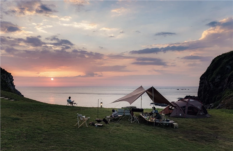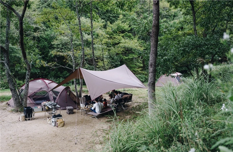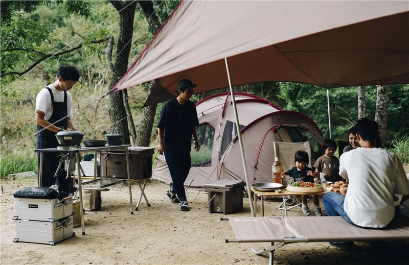 The easy to set up Hexa Evo Pro. Tarp only requires 2 poles and 6 stakes to create a space that brings together an entire campsite. The elegant shape combines design you have come to expect from Snow Peak with the functionality to house multiple tents and living areas underneath. Our premium water-repellent hexagonal tarp creates even more protection with the new Shield process material.