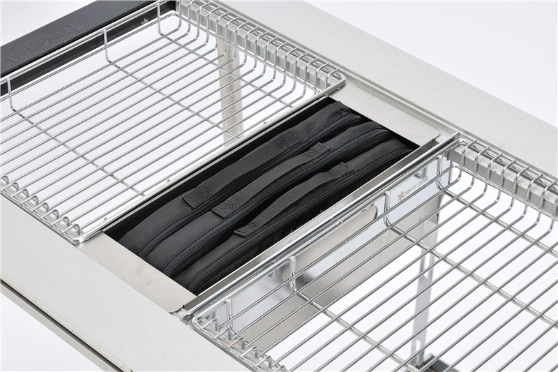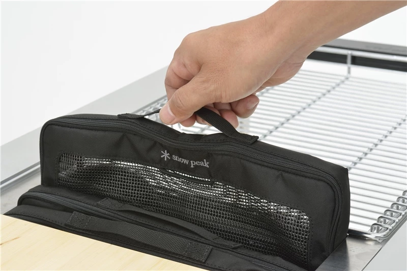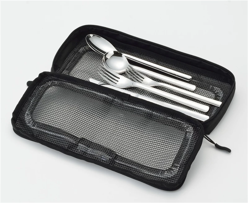 Designed in Japan, the Small Kitchen Mesh Case is a storage case for cutlery or kitchen tools. The nylon material is easy to clean and the mesh panels prevent moisture buildup.
