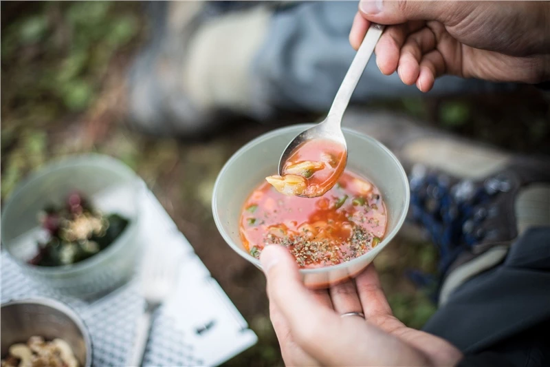 Dine like royalty in the backcountry with this titanium fork and spoon. The two fit together within a slim canvas case that altogether weighs less than our competitors plastic or stainless cutlery.