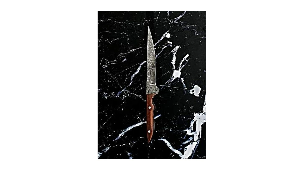 HANDMADE STEEL DAMASCUS HUNTING KNIFE – Blade is Hand Forged with 1095 & 15N20 High and Low Carbon Steel with over 400 Layers.These two alloys are folded together many times, then dipped in Ferric Chloride which eats away at the different metals at different rates showing the Damascus pattern. This is genuine folded steel, not laser printed. Scores a 58 HRC on the Rockwell Scale – This metal is tough and ready for work. Creating Damascus steel is still unknown to this day. The process has been lost for the past 500 years. COMES WITH GENUINE LEATHER SHEATH!![]()